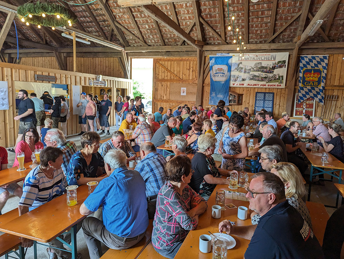 Zu ihrem traditionellen zweitägigen Grill- und Sommerfest hat die Freiwillige Feuerwehr Hartkirchen am Wochenende in den Event-Stadl nach Wochenweis eingeladen. Die Wehrmänner hatten den großen Stadl zur Partyhalle umfunktioniert und der Außenbereich wurde in einen Biergarten verwandelt. Ebenso zahlreich wie am Samstagabend kamen auch am Sonntag wieder viele Gäste zum Grill- und Sommerfest, um sich von der Hartkirchener Wehr zum Mittagstisch mit vielen Spezialitäten verwöhnen zu lassen.