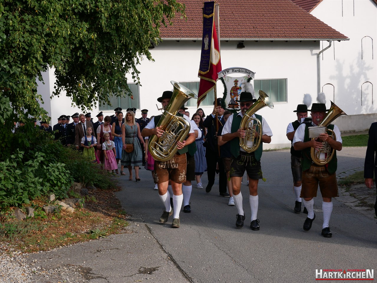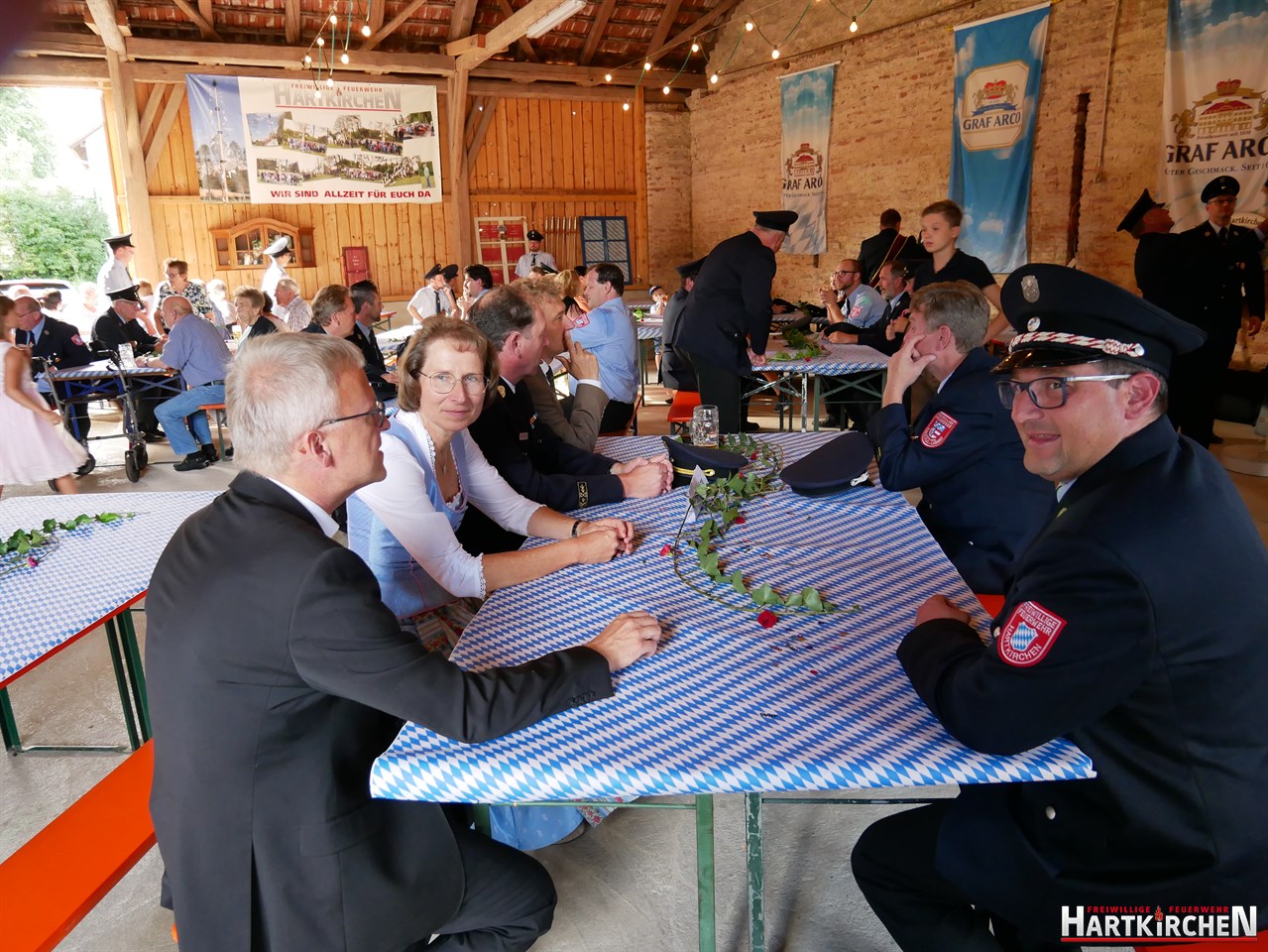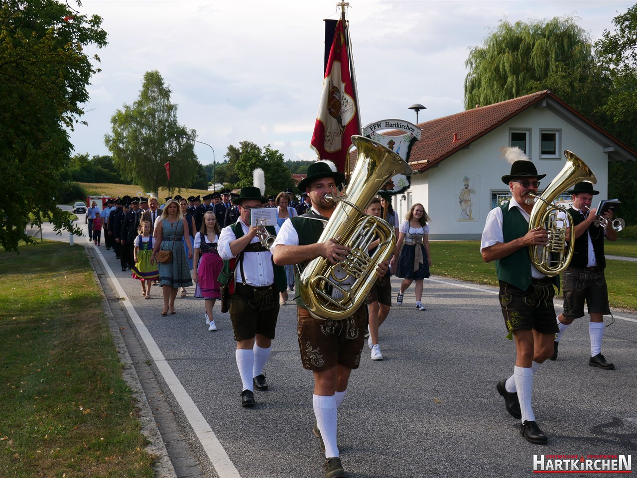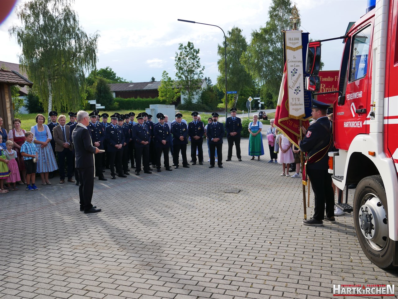 Bürgermeister Josef Beham merkte an, dass durch die Ausstattung der Feuerwehr Hartkirchen mit diesem Löschgruppenfahrzeug eine zukunftsweisende Entscheidung getroffen wurde, die auf fruchtbaren Boden gefallen ist und für die gesamte Bevölkerung der Marktgemeinde Eichendorf einen Mehrwert bedeutet. „Auf beeindruckende Weise hat die Feuerwehr Hartkirchen aufs Neue bewiesen, dass sie großen Herausforderungen stets gewachsen ist“. Er hofft, dass sie auch in Zukunft einen starken Pfeiler im Brandschutzwesen der Gemeinde und des Landkreises Dingolfing-Landau darstellen kann. Im Anschluss konnte das Löschfahrzeug besichtigt werden. Bei einem gemeinsamen Essen und musikalischer Untermalung durch die Blaskapelle Führmann klang der Tag aus.