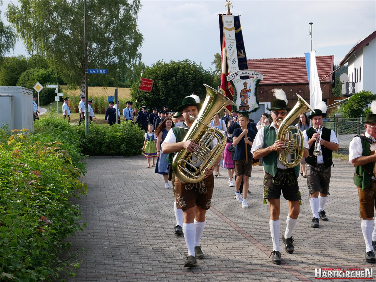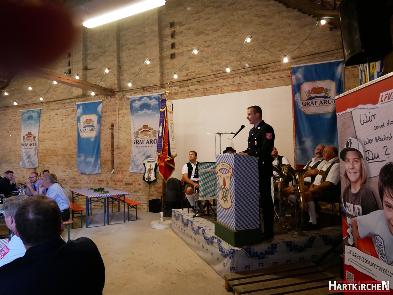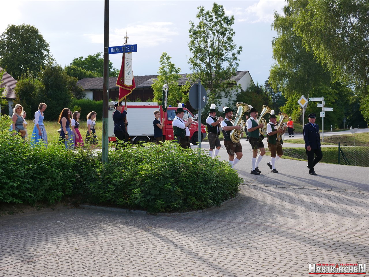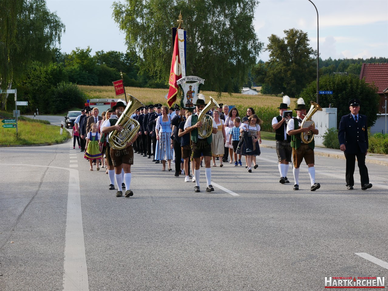 Bürgermeister Josef Beham merkte an, dass durch die Ausstattung der Feuerwehr Hartkirchen mit diesem Löschgruppenfahrzeug eine zukunftsweisende Entscheidung getroffen wurde, die auf fruchtbaren Boden gefallen ist und für die gesamte Bevölkerung der Marktgemeinde Eichendorf einen Mehrwert bedeutet. „Auf beeindruckende Weise hat die Feuerwehr Hartkirchen aufs Neue bewiesen, dass sie großen Herausforderungen stets gewachsen ist“. Er hofft, dass sie auch in Zukunft einen starken Pfeiler im Brandschutzwesen der Gemeinde und des Landkreises Dingolfing-Landau darstellen kann. Im Anschluss konnte das Löschfahrzeug besichtigt werden. Bei einem gemeinsamen Essen und musikalischer Untermalung durch die Blaskapelle Führmann klang der Tag aus.