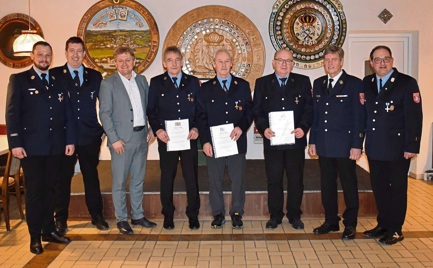 Ein Höhepunkt des Abends waren die Ehrungen, die Kreisbrandmeister Christian Greiner vornahm. Für 40 Jahre aktiven Feuerwehrdienst wurden Manfred Aigner, Wolfgang Aigner, Josef Beham und Christian Schraufnagl geehrt. Sie wurden für ihre jahrzehntelange Treue, ihren unermüdlichen Einsatz und ihre Verdienste um das Feuerwehrwesen ausgezeichnet. Für 25 Jahre aktiven Feuerwehrdienst erhielten Thomas Götz, Sabine Loibl, Stefan Salzberger, Christian Schmerbeck, Klaus Sicheneder und Bettina Schiller eine Würdigung. Ihr langjähriges Engagement, ihre Einsatzbereitschaft und ihre Verbundenheit zur Feuerwehr wurden mit großem Applaus honoriert.