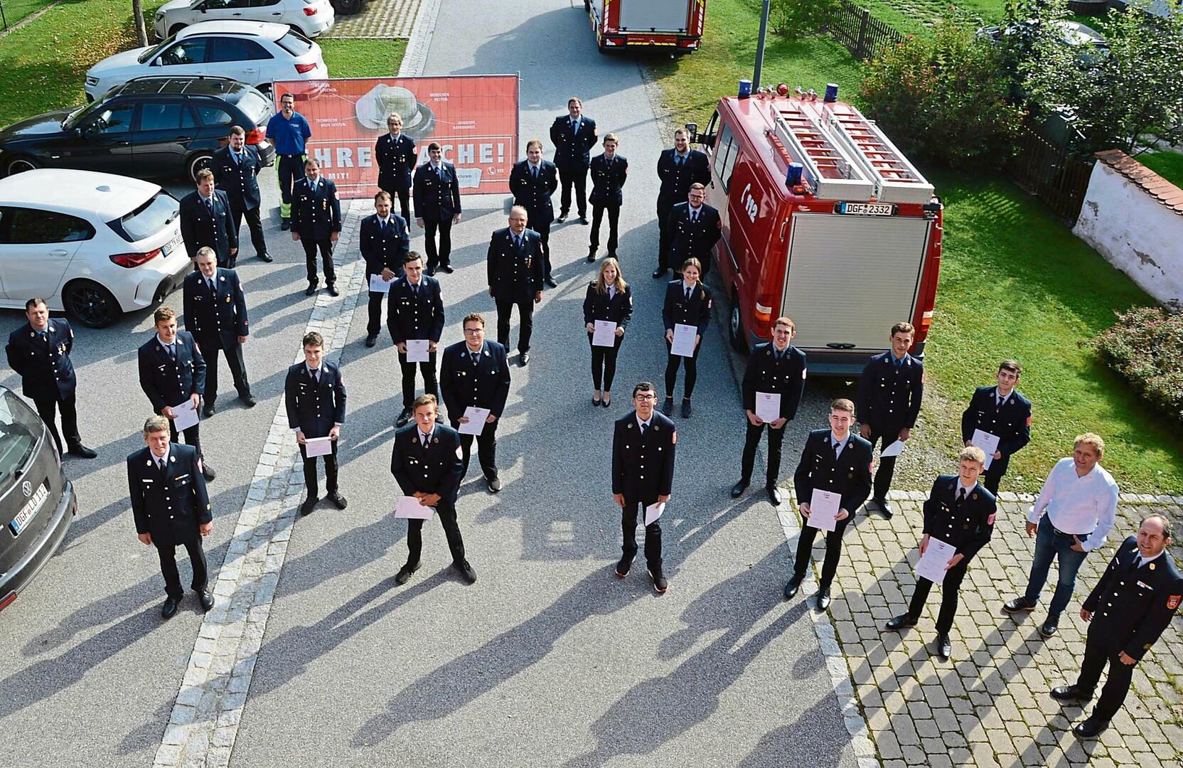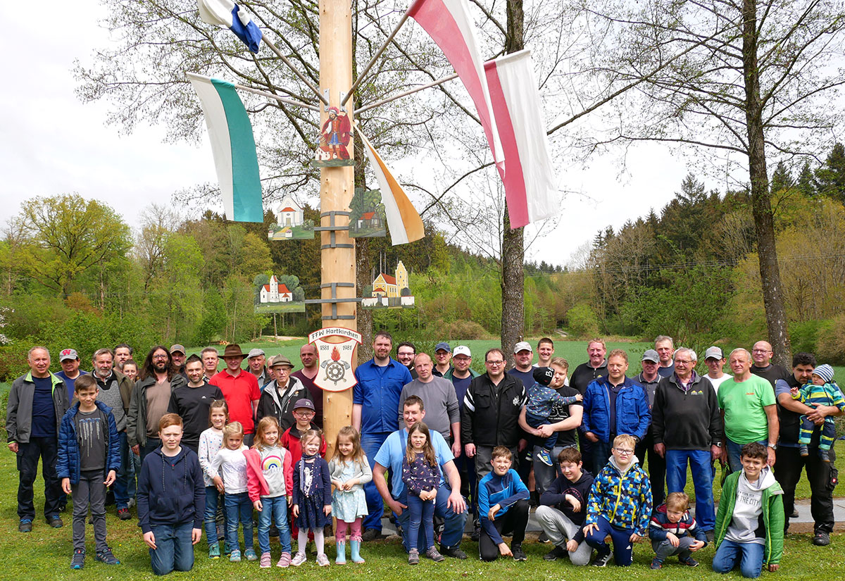 Am Sonntag versammelten sich Helfer der Feuerwehr am frühen Morgen, um den von Johannes Sepp gestifteten Maibaum einzuholen. Anschließend wurde der 33 Meter Stamm geschmückt und verziert, der dann zum Kommando von Karl Apfelbeck mit Muskelkraft und Schwaiberln in die Senkrechte gehievt wurde. Anschließend machten es sich alle Helfer und Zuschauer im Vorhof des Gerätehauses gemütlich, um noch ein kleines Maifest mit Brotzeit abzuhalten.