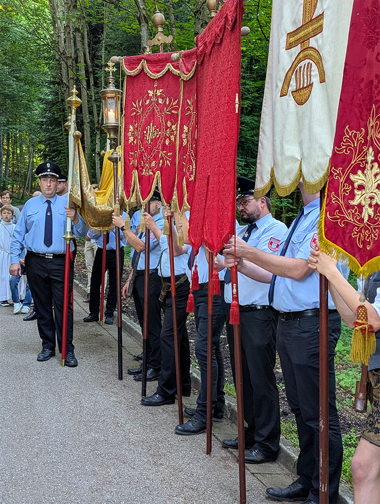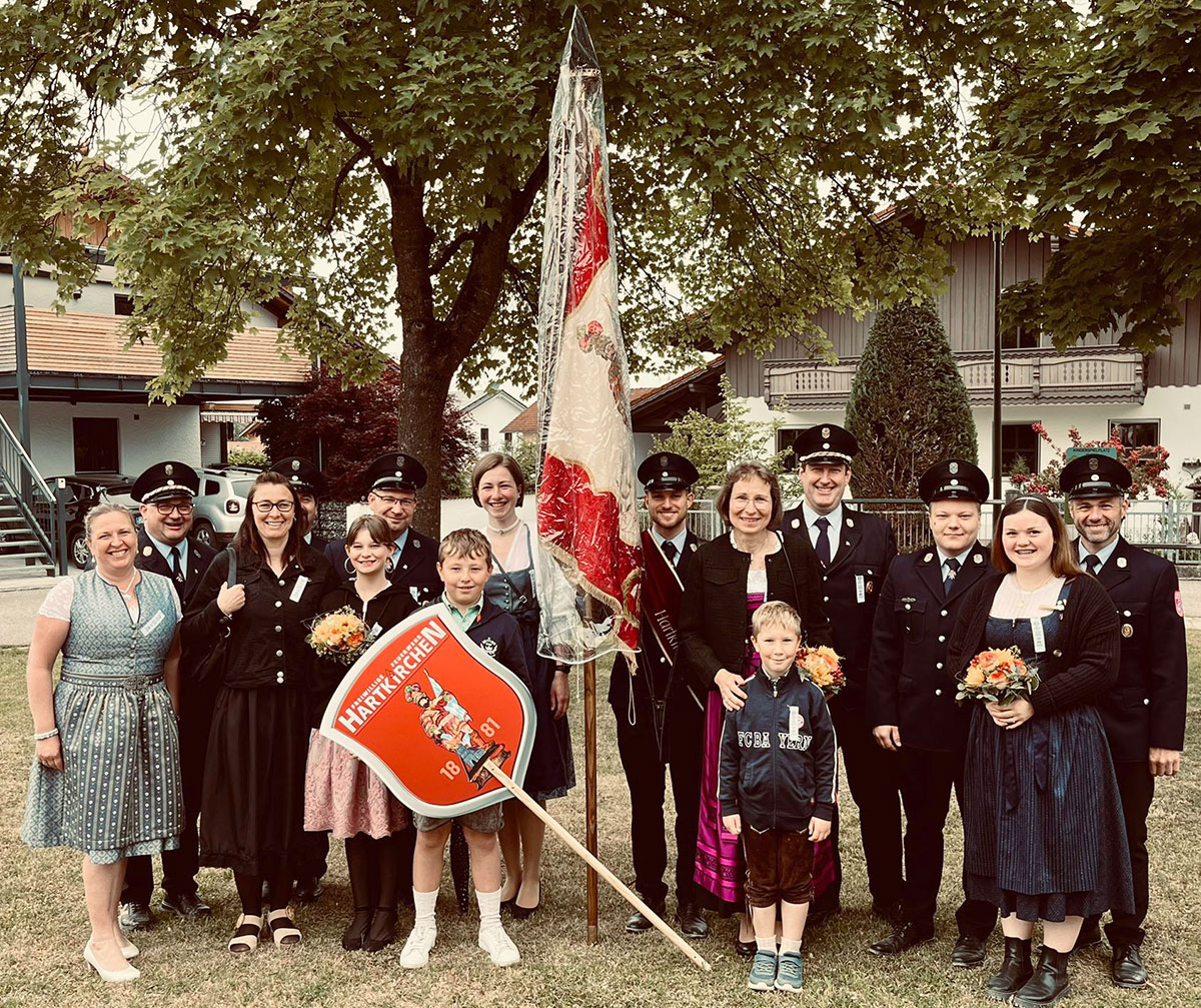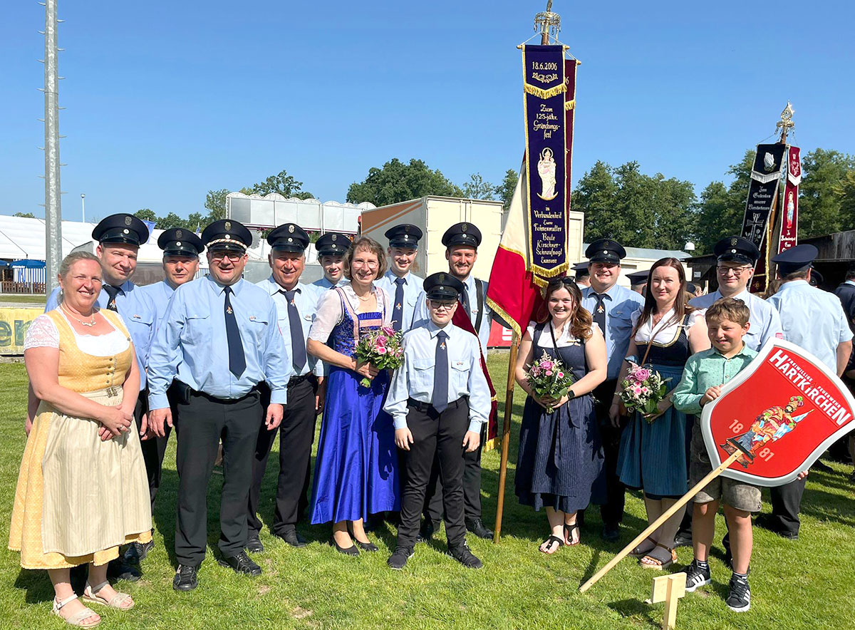 Mit dabei eine Fahnenabordnung der FFW Hartkirchen und der FFW Reichstorf, die auch den "Himmel" und etliche Fahnen trug.